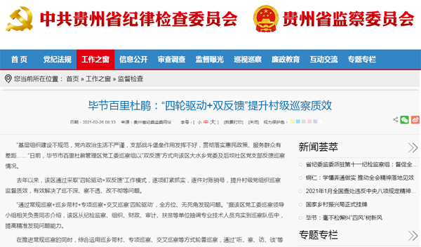 2021年2月26日贵州省纪委监委网站 工作之窗