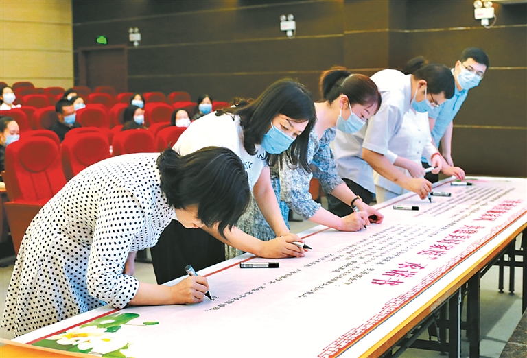 湖北省竹山县引领党员领导干部注重家风建设、管好身边人,组织开展“传承清廉家风 共建美好家庭”评选活动,以推动社会风气向好向善。图为该县党员干部家属正在家庭助廉承诺书上签名。 袁海成 摄