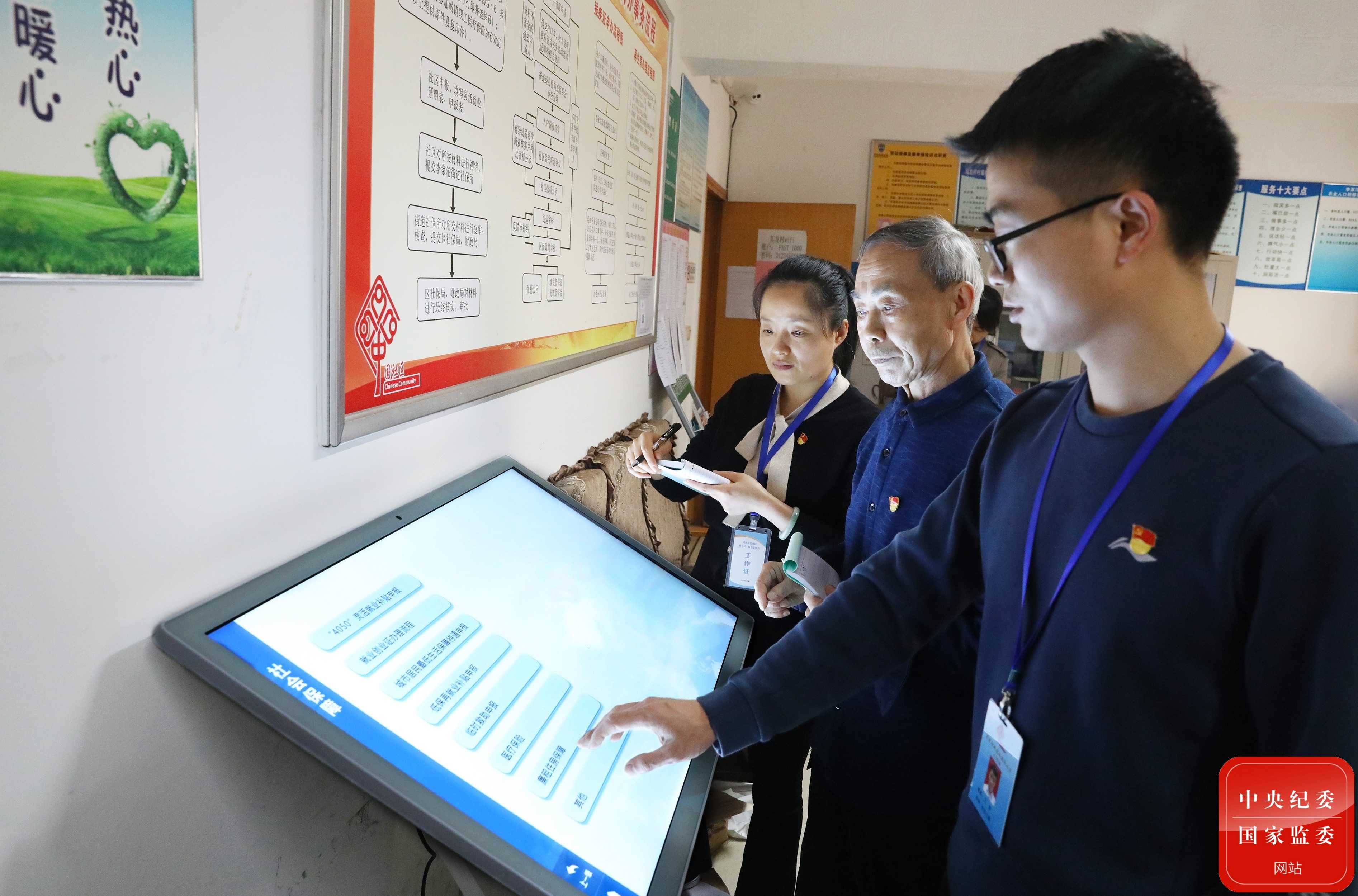 为做好乡村治理工作,杭州市萧山区靖江街道加快推动数字化信息技术与基层纪检监察业务深度融合,以更加科学高效的“智慧”监督机制,加快推动基层“智治”新生态建设。图为纪检监察干部在靖江街道和顺村查看智慧村务大数据平台信息。(杭州市萧山区靖江街道纪工委 曹梦洁 摄)