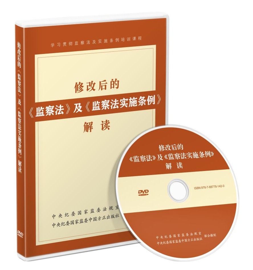 由中央纪委国家监委法规室、中国方正出版社联合摄制的专题讲座光盘《修改后的〈监察法〉及〈监察法实施条例〉解读》,近日由中国方正出版社出版。