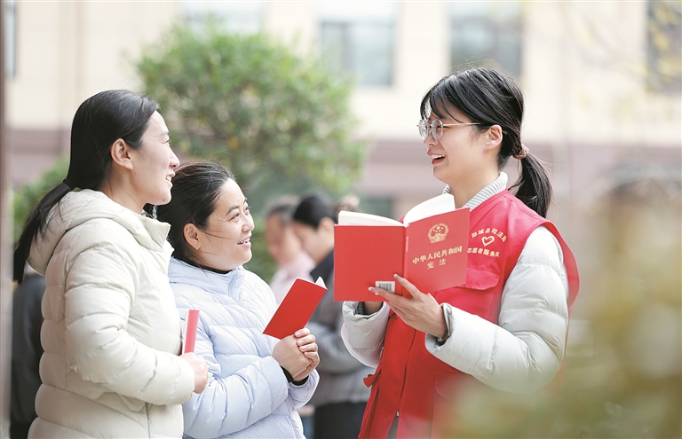 绵绵用力、久久为功。新征程上,要坚持以习近平法治思想为指引,不断营造全社会尊崇宪法、学习宪法、遵守宪法、维护宪法、运用宪法的浓厚氛围,持续夯实全面依法治国的社会基础,让宪法精神的光辉照亮以中国式现代化全面推进强国建设、民族复兴伟业的奋进之路。