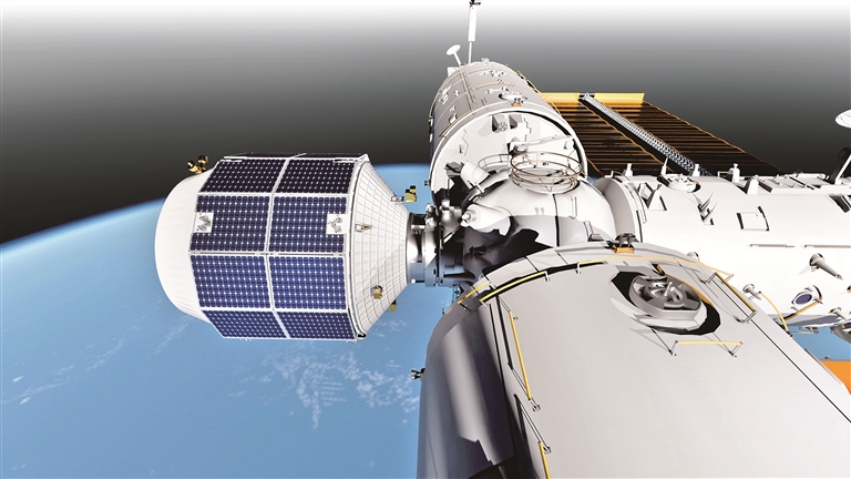 “轻舟”与空间站对接效果图。中国科学院微小卫星创新研究院供图