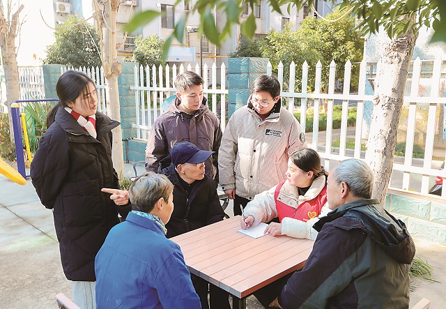 浙江省湖州市长兴县雉城街道南门社区,党员干部主动下沉一线,听取群众意见建议与困难诉求。图片来源:视觉中国