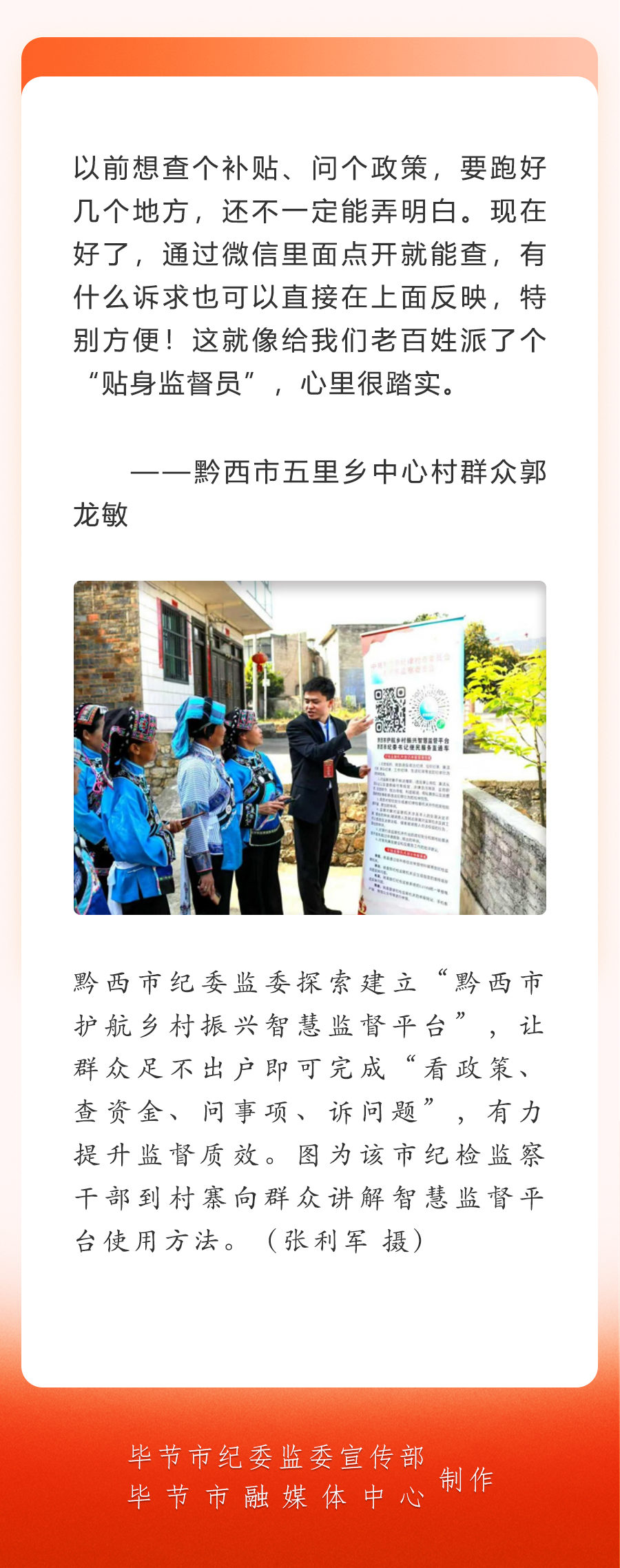 2025年,乌蒙大地清风劲吹,毕节市正风肃纪反腐步履坚实。纪检监察工作成效,最终要由广大干部群众来评判,在具体实践中检验,在可感可及中彰显,在细节实事中体现。它不仅是会议室里的安排部署,更是田埂上群众手中的补贴、校园里的热乎饭菜、柴米油盐中的减项降费;它不仅是文件里的纪法条文,更是干部轻装快跑的脚步、重大项目奋勇攻坚的火热、窗口高效便捷的服务、市场亲清规矩的交往。