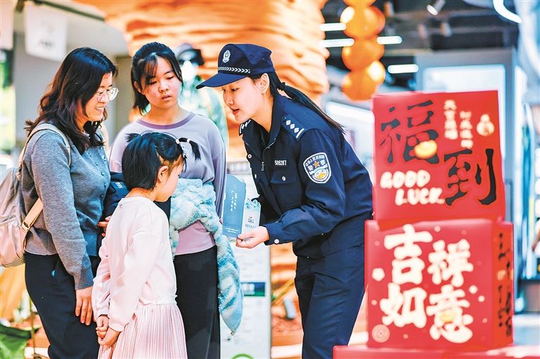 春节期间,天津市公安局滨海分局民警在滨海新区万达广场开展反诈宣传活动。 新华社发(杜鹏辉 摄)