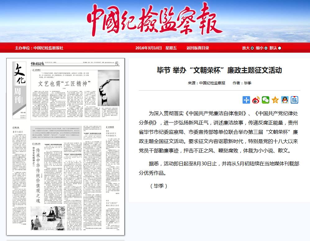 毕节 举办“文朝荣杯”廉政主题征文活动