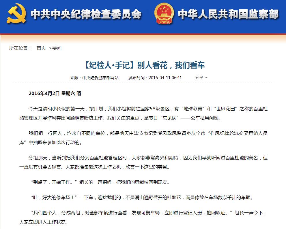 今天是清明小长假的第一天,按计划,我们小组将前往国家5A级景区,有“地球彩带”和“世界花园”之称的百里杜鹃管理区开展作风突出问题明察暗访工作。我们关注的重点,是节日“常见病”——公车私用问题。