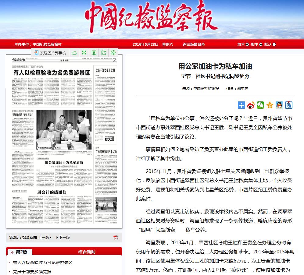 “用私车为单位办公事,怎么还被处分了呢?”近日,贵州省毕节市市西街道办事处翠西社区党总支书记王胜、副书记王贵全因私车公养被处理的消息在当地引起了议论。