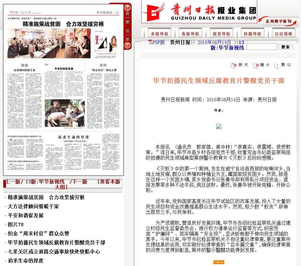 毕节拍摄民生领域反腐教育片警醒党员干部