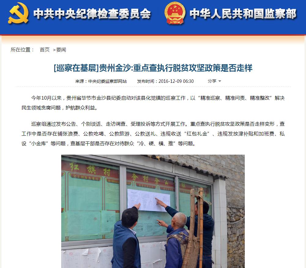 今年10月以来,贵州省毕节市金沙县纪委启动对该县化觉镇的巡察工作,以“精准巡察、精准问责、精准整改”解决民生领域贪腐问题,护航群众利益。