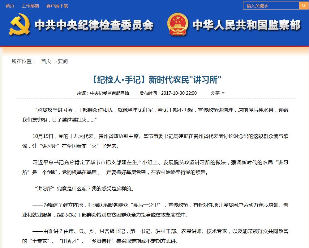 10月19日,党的十九大代表、贵州省政协副主席、毕节市委书记周建琨在贵州省代表团讨论时念出的这段群众编写歌谣,让“讲习所”在全国着实“火”了起来。