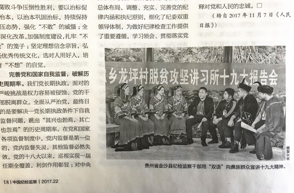 中国纪检监察杂志:金沙纪检干部“双语”宣讲十九大