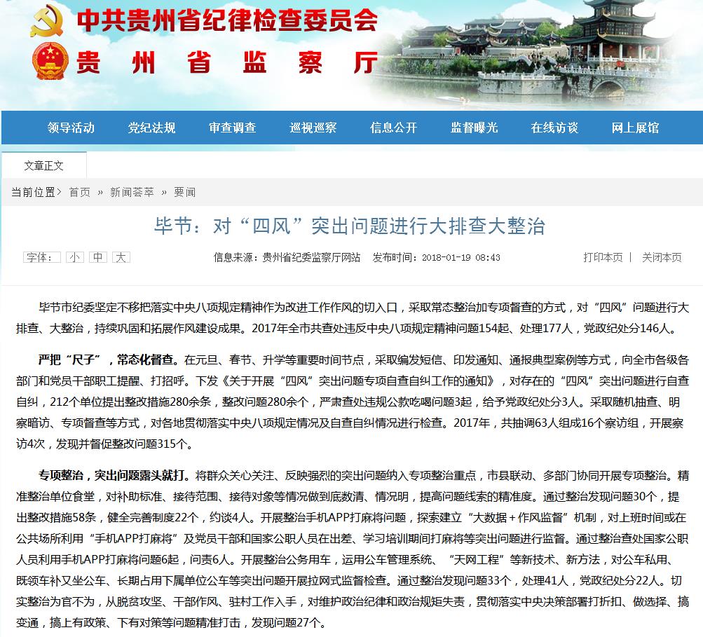 2018年01月19日贵州省纪委监察厅网站要闻