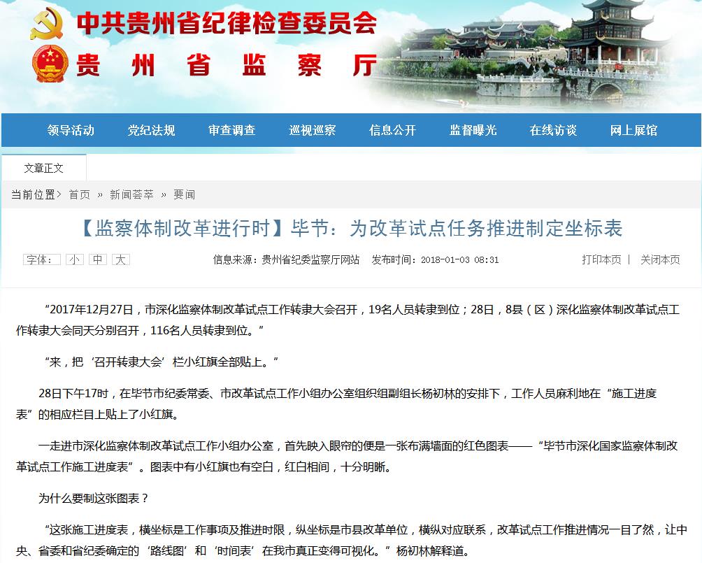 此时毕节市监察体制改革试点各项工作,正按着施工进度表,依表推进、消号管理、行疾步稳、全力奋进……