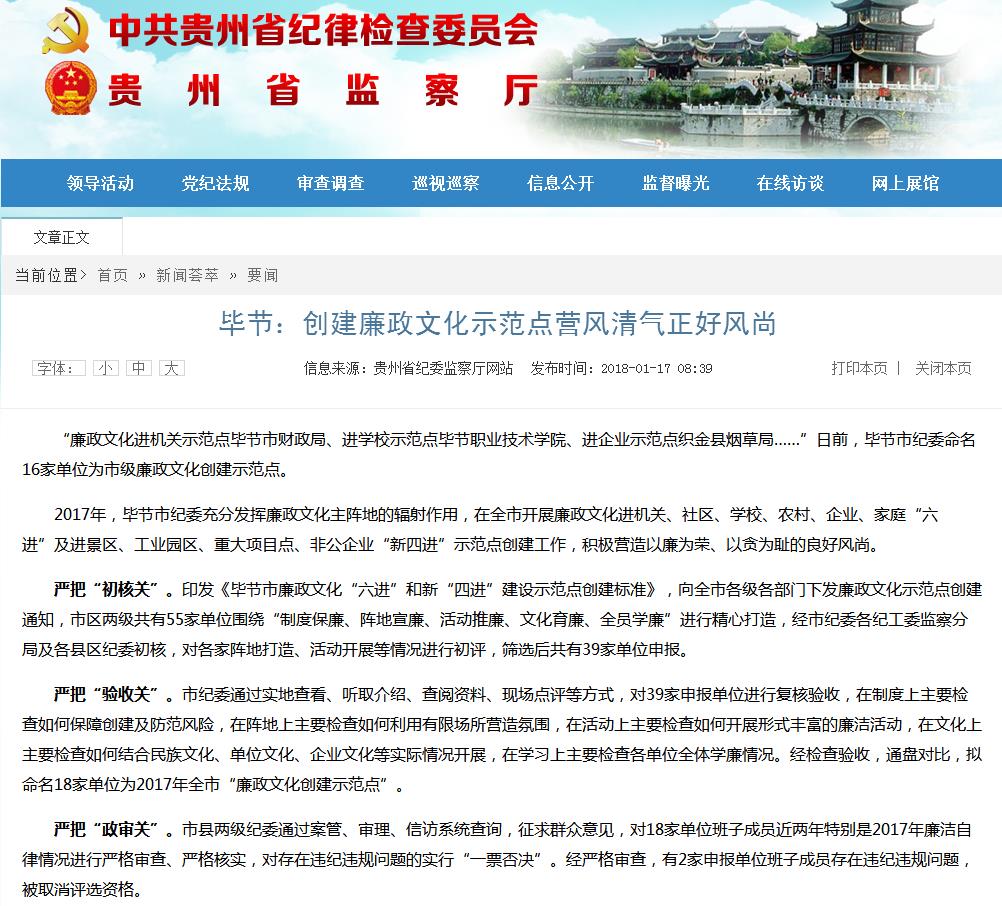 2018年01月17日贵州省纪委监察厅网站要闻