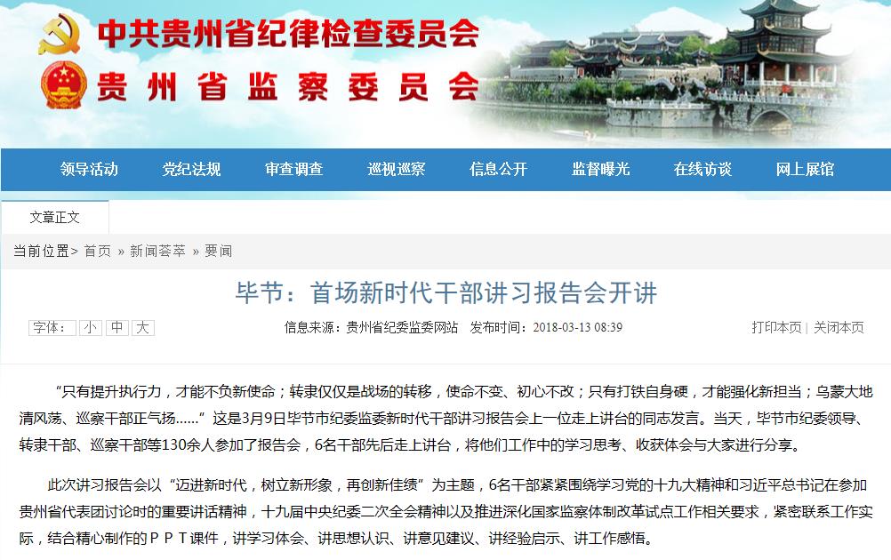 贵州省纪委监委网站:毕节:首场新时代干部讲习报告会开讲