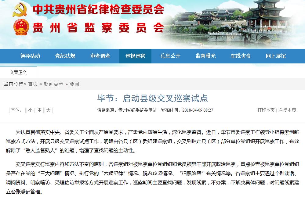 “探索县级交叉巡察,有效打破区域管辖,巡察组成员不在本辖区开展工作,减少人情关系,就能大胆找问题,将会很大提升巡察质量”,毕节市委巡察办负责同志介绍到。