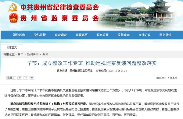 2018年10月26日贵州省纪委监委网站