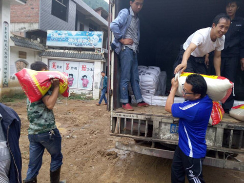 纳雍县沙包镇纪委书记王道陟监督和运送救灾物资