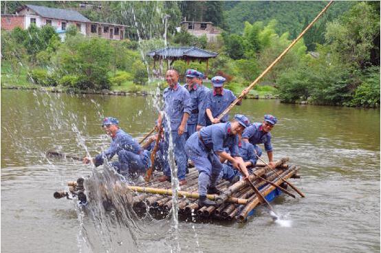 两支部队开始急行军,穿越芦溪在井冈湖边胜利会师。在那里,迎接他们的是今天拓展训练的第三个项目,横渡大河。