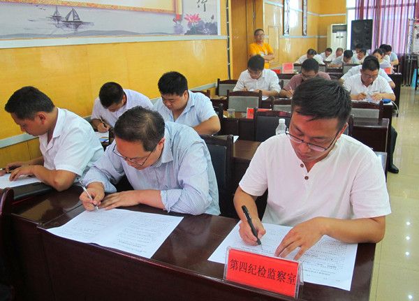 图为新任纪检监察干部进行知识测试