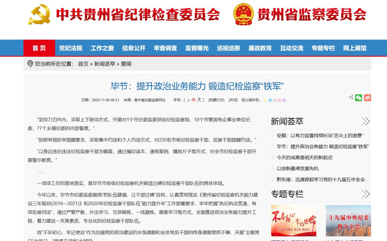 2020年11月6日 贵州省纪委监委网站 要闻