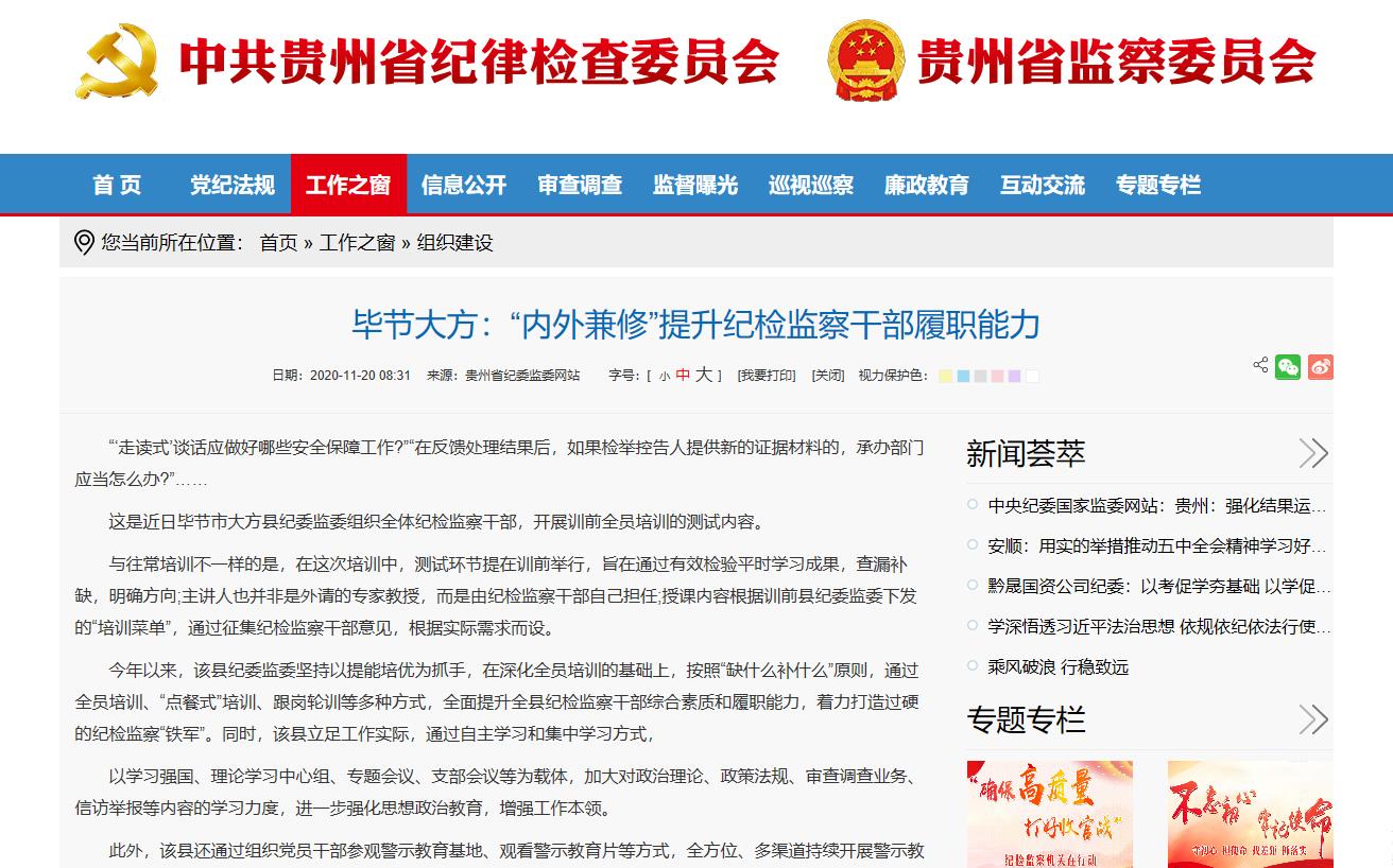 2020年11月20日 贵州省纪委监委网站 工作之窗