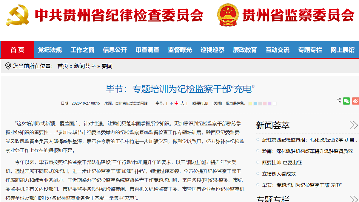 2020年10月27日贵州省纪委监委网站 要闻