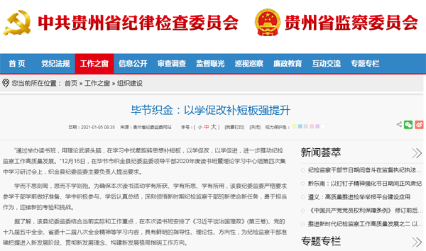 2021年1月5日贵州省纪委监委网站 工作之窗