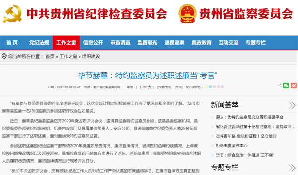2021年3月2日贵州省纪委监委网站 工作之窗