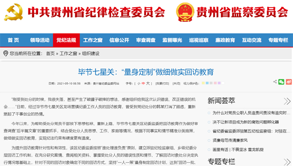 2021年5月10日贵州省纪委监委网站 工作之窗