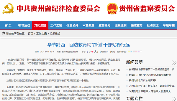 2021年7月5日贵州省纪委监委网站 工作之窗