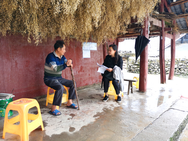 图为贵州省遵义市纪委监委驻竹元村第一书记谢佳清(右)在村民刘荣国家中走访了解情况,帮助解决困难。夏应礼 摄