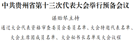 中共贵州省第十三次代表大会举行预备会议 谌贻琴主持