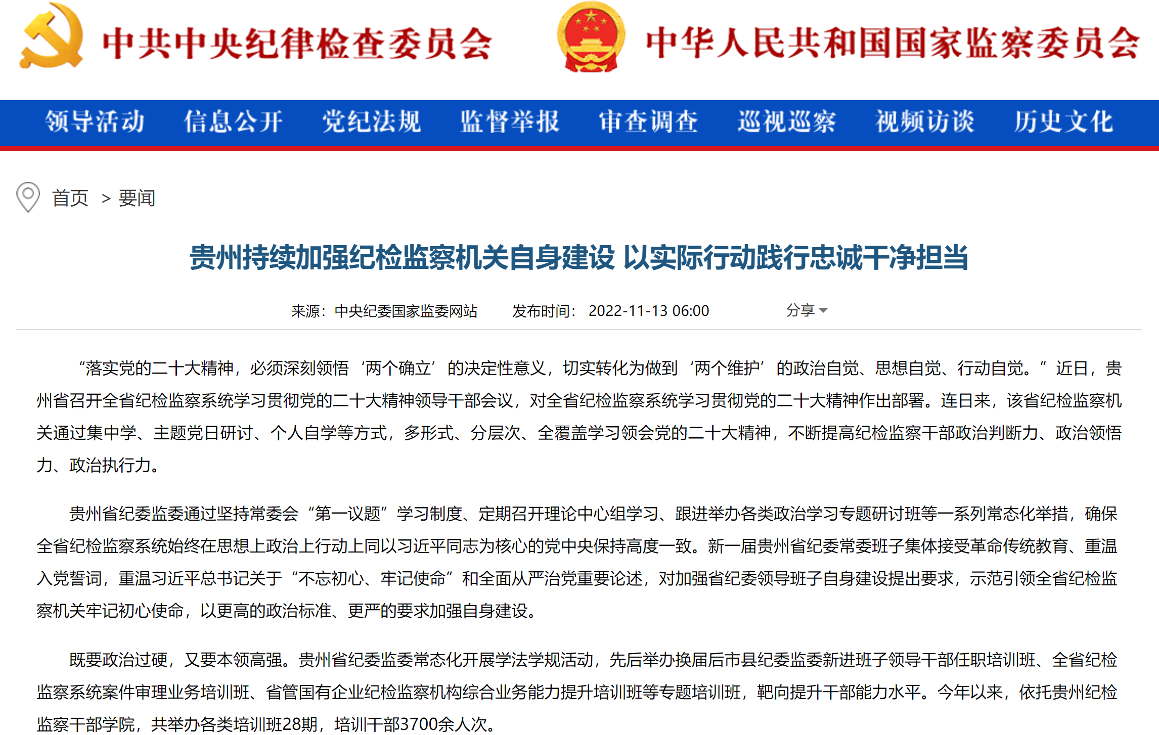 既要政治过硬,又要本领高强。贵州省纪委监委常态化开展学法学规活动,先后举办换届后市县纪委监委新进班子领导干部任职培训班、全省纪检监察系统案件审理业务培训班、省管国有企业纪检监察机构综合业务能力提升培训班等专题培训班,靶向提升干部能力水平。今年以来,依托贵州纪检监察干部学院,共举办各类培训班28期,培训干部3700余人次。