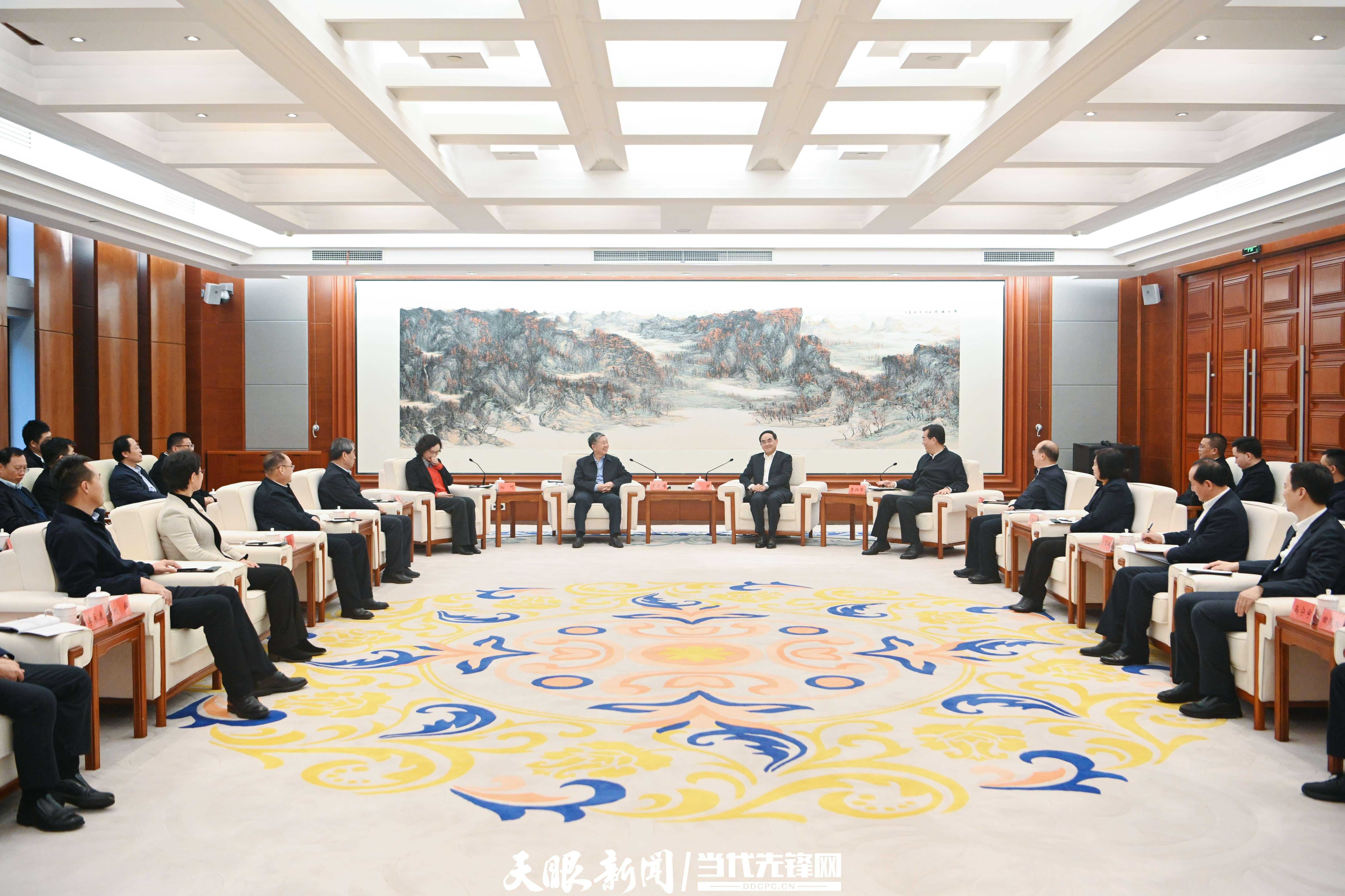 徐麟、李炳军代表省委、省政府对曹建国一行表示欢迎,感谢中国航发一直以来对贵州发展的大力支持。徐麟说,当前,贵州正深入贯彻习近平总书记视察贵州重要讲话和对贵州工作重要指示精神,全力实施围绕“四新”主攻“四化”主战略、实现“四区一高地”主定位,充分发挥比较优势,在主动服务国家战略中作出贵州贡献,在积极融入国家战略中赢得贵州发展。希望中国航发一如既往支持贵州发展,不断深化双方在科技创新、产业发展、人才培养等领域务实合作。李炳军说,贵州正坚持以高质量发展统揽全局,以科技创新为引领,大力打造“六大产业基地”,积极融入国家战略腹地建设,着力构建现代化产业体系。希望中国航发充分发挥优势,推动更多科技成果在贵州转化,带动贵州提升科技创新能力、助推重点产业发展。贵州将积极创造良好条件,全力支持中国航发在黔单位发展。
