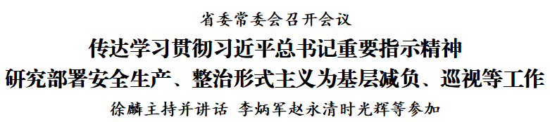 会议强调,要深入学习贯彻习近平总书记关于安全生产重要指示精神,坚决贯彻落实党中央重大决策和国务院工作部署,坚持人民至上、生命至上,扛牢安全生产重大政治责任,把“时时放心不下”的责任感转化为“事事心中有底”的行动力,坚决防范遏制重特大事故发生,确保人民群众生命财产安全和社会大局稳定。要全面开展安全生产治本攻坚三年行动,深入抓好安全生产风险隐患大排查,突出做好群众身边的风险隐患、重点行业领域风险隐患、重点地区风险隐患的排查整治,及时消除消防、煤矿、道路交通、城镇燃气、危化品、烟花爆竹、旅游、建筑施工等领域风险隐患,全力做好低温雨雪冰冻灾害防范应对和地质灾害防御等工作。要严格落实“党政同责、一岗双责、齐抓共管、失职追责”和“三管三必须”要求,各级党政主要负责同志要履行好第一责任人职责,抓细抓实安全生产大督查,层层压紧压实安全生产责任,坚决做到守土有责、守土有方、守土有效。要细化落实春节期间应急值班值守、风险监测预警、救援力量备勤、安全宣传教育等各项工作,确保全省人民安全温暖过冬、欢乐祥和过年。