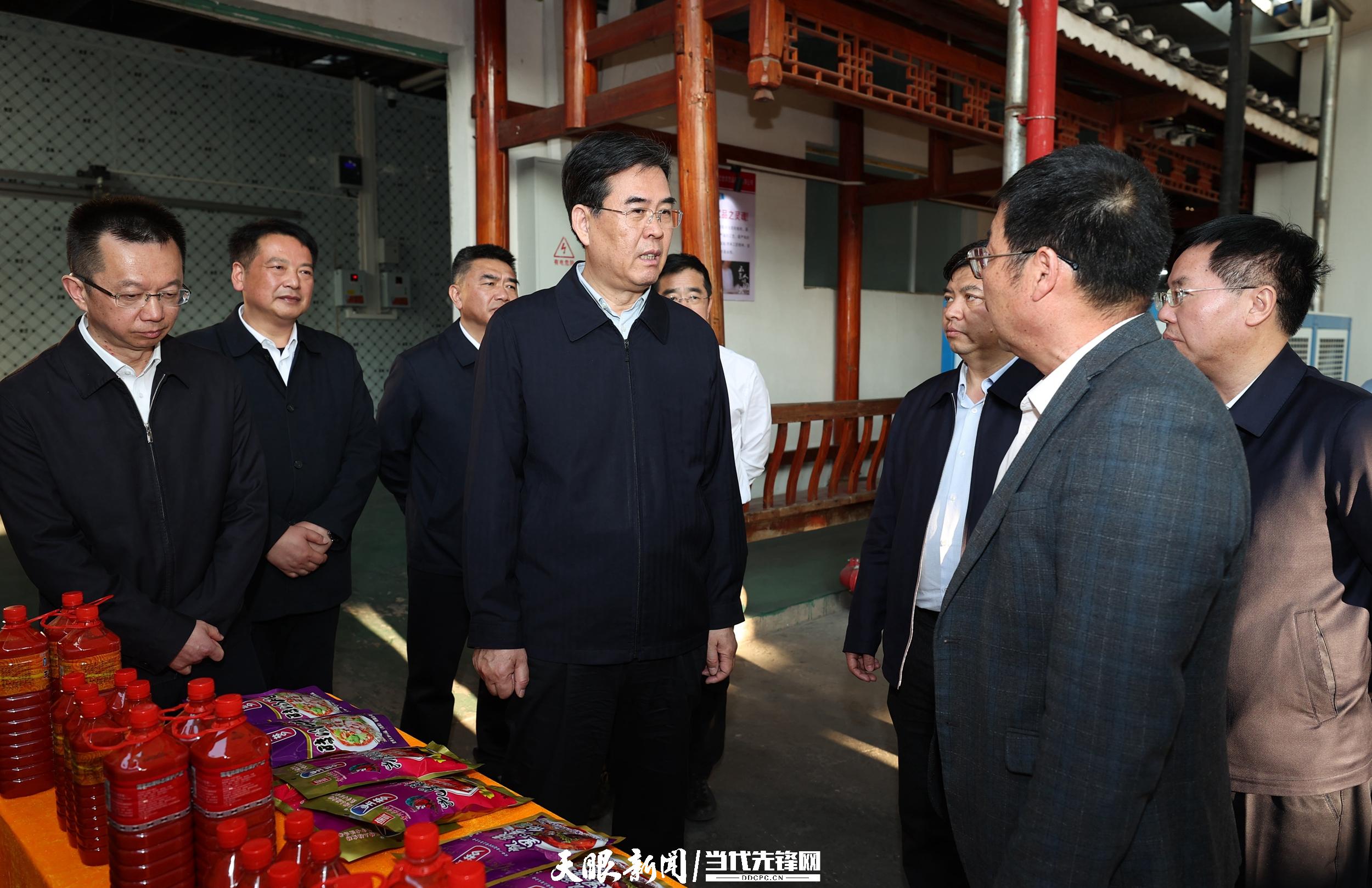 李炳军在麻江县明洋食品公司,详细了解“酸汤”特色食品研发、加工、销售情况。