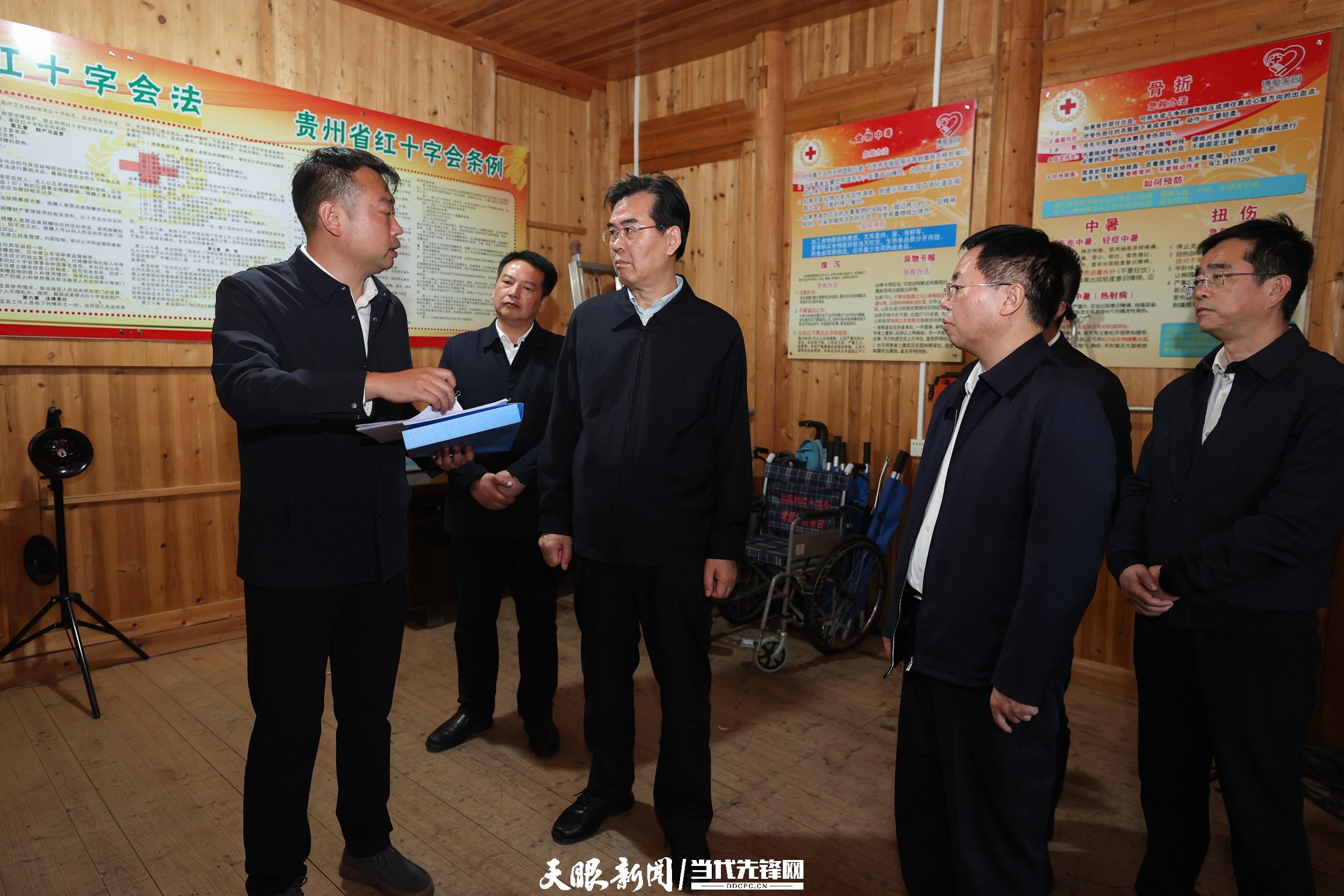 李炳军在麻江县宣威镇乌羊麻苗寨微型消防站,听取消防安全管理情况。