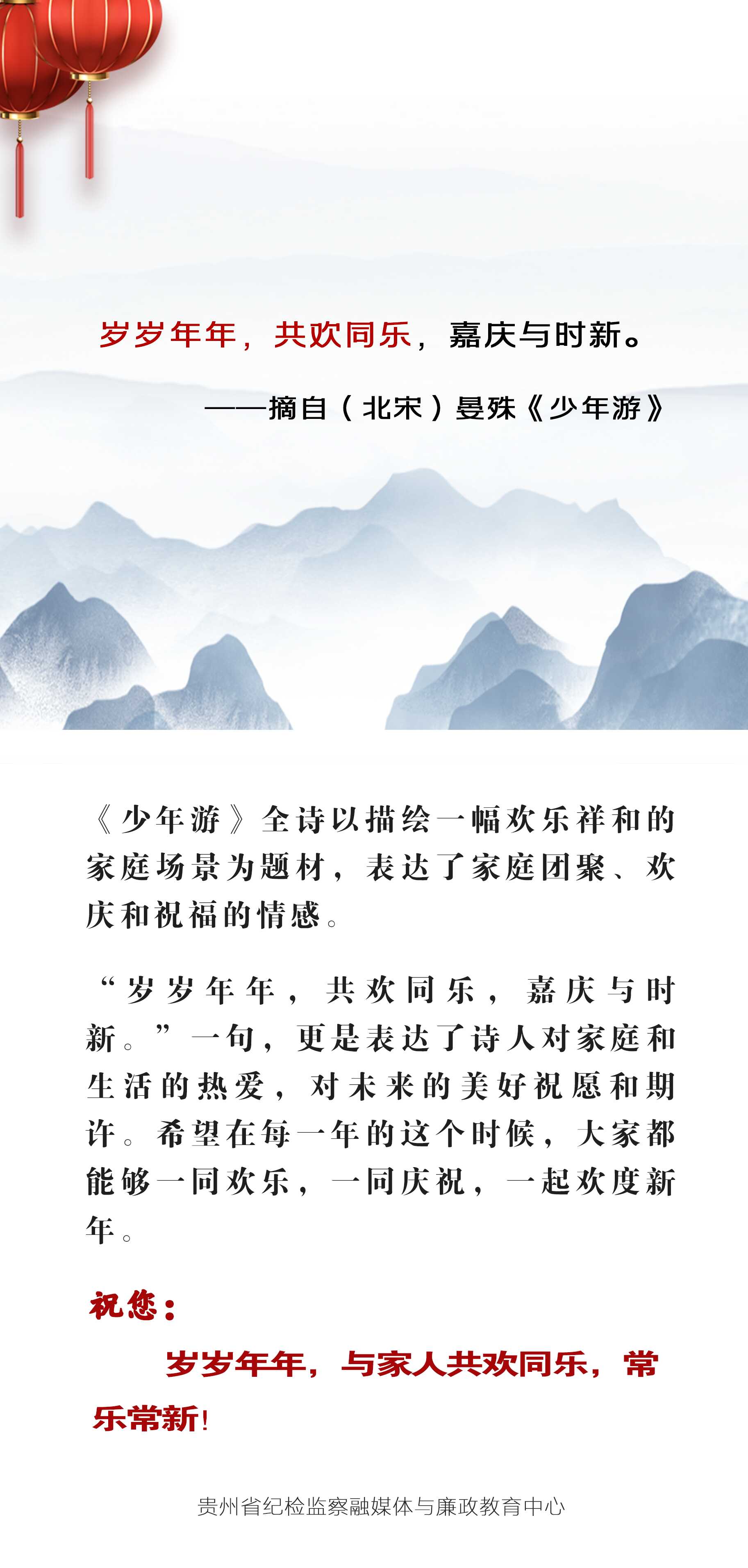 春节期间,省纪委监委“网、微、端”平台,推出“用古诗词送祝福”专题,每天精选最美祝福诗词,与您共庆新年。