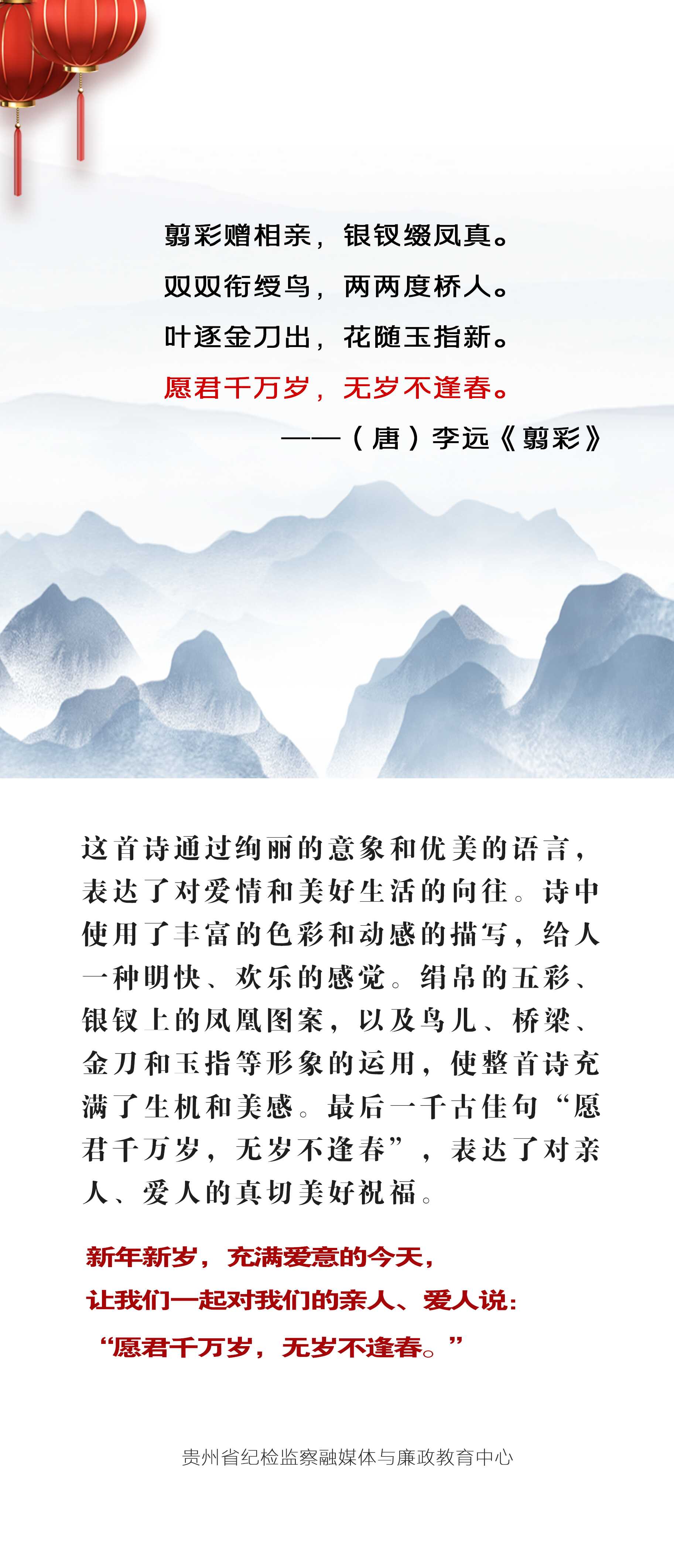 春节期间,省纪委监委“网、微、端”平台,推出“用古诗词送祝福”专题,每天精选最美祝福诗词,与您共庆新年。