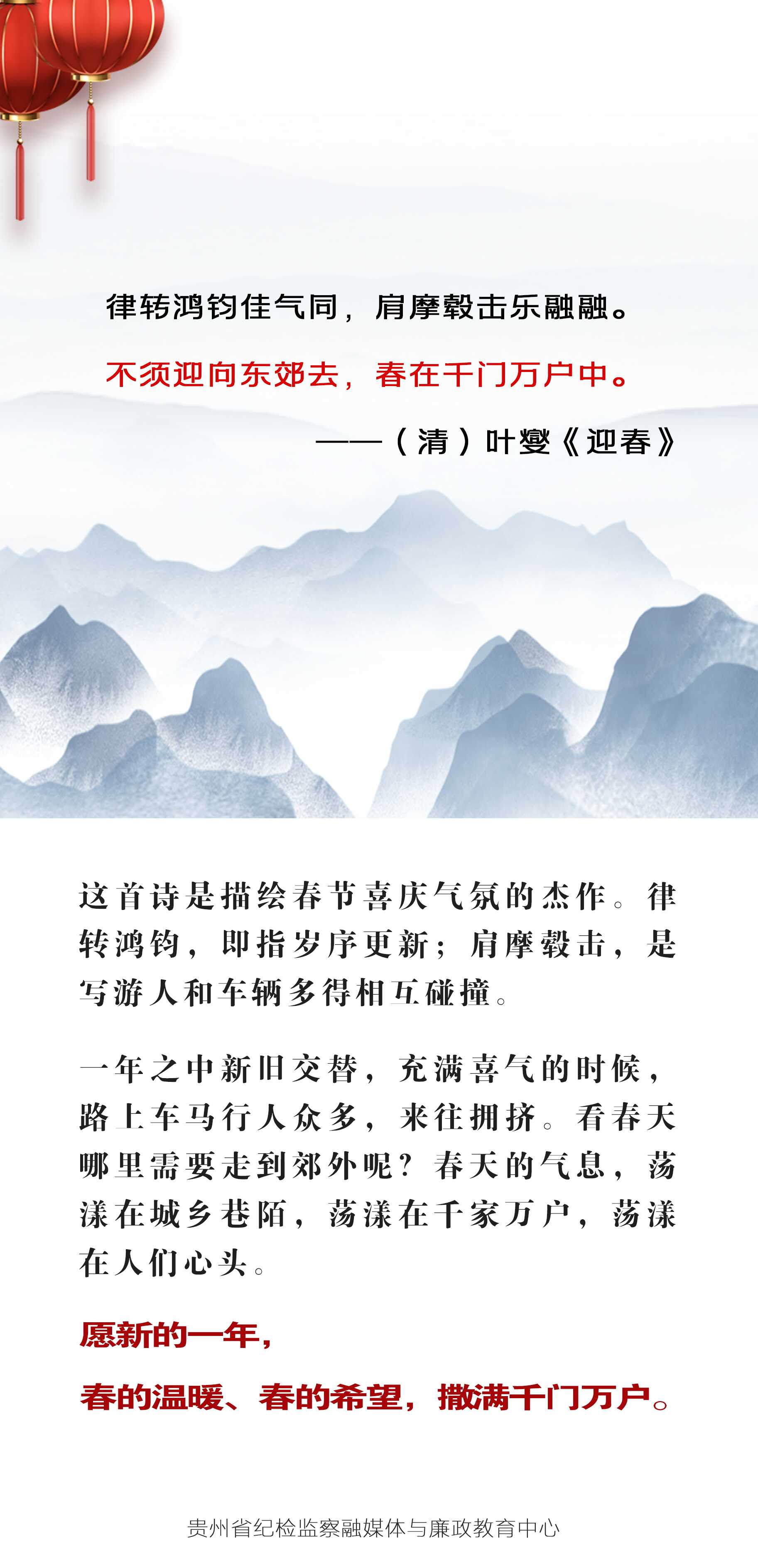 春节期间,省纪委监委“网、微、端”平台,推出“用古诗词送祝福”专题,每天精选最美祝福诗词,与您共庆新年。
