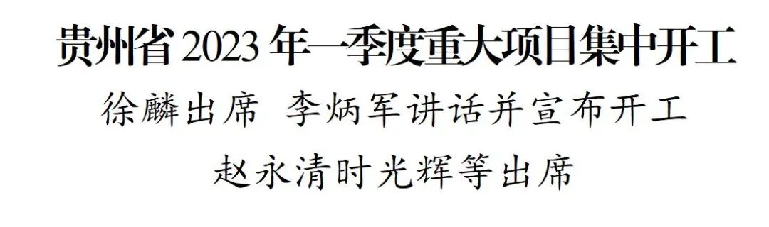 受徐麟书记委托,李炳军代表省委、省人大常委会、省政府、省政协向项目集中开工表示热烈祝贺。他指出,今年是全面贯彻党的二十大精神的开局之年。习近平总书记和党中央明确要求,要大力提振市场信心,着力扩大国内需求,推动经济运行整体好转。实现这个目标,有效投资必须发力,产业必须加快发展,关键要落到项目建设上、靠实体项目来支撑。省委、省政府把今年确定为项目建设年,举行全省一季度重大项目集中开工仪式,就是要向全社会彰显我们坚定不移贯彻新发展理念,推动贵州高质量发展实现新跨越的坚定决心和鲜明态度,在全省营造大抓项目、抓大项目的浓厚氛围,奏响项目建设最强音。全省上下要以此次项目集中开工为动员令,一天不耽误、一刻不懈怠,以高质量项目建设确保一季度“开门稳”,为完成全年目标奠定坚实基础。要迅速掀起产业大招商热潮,各级领导干部要立即行动起来,用更多时间走出去,引进更多央企、民企、外企,实现项目建设质量、数量、规模新突破。要全面加快项目建设,全力以赴抢时间、拼进度,优化要素保障,提升服务质量,推动签约项目早开工、在建项目早建成、竣工项目早达产,形成比学赶超的生动局面。要坚决确保项目质量效益,把质量效益原则贯穿项目谋划、建设、运营全过程,决不搞无效低效投资,确保经得起历史、实践和人民检验。