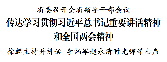 3月13日,省委召开全省领导干部会议,传达学习习近平总书记在全国两会期间重要讲话精神和十四届全国人大二次会议、全国政协十四届二次会议精神,安排部署我省贯彻落实工作。