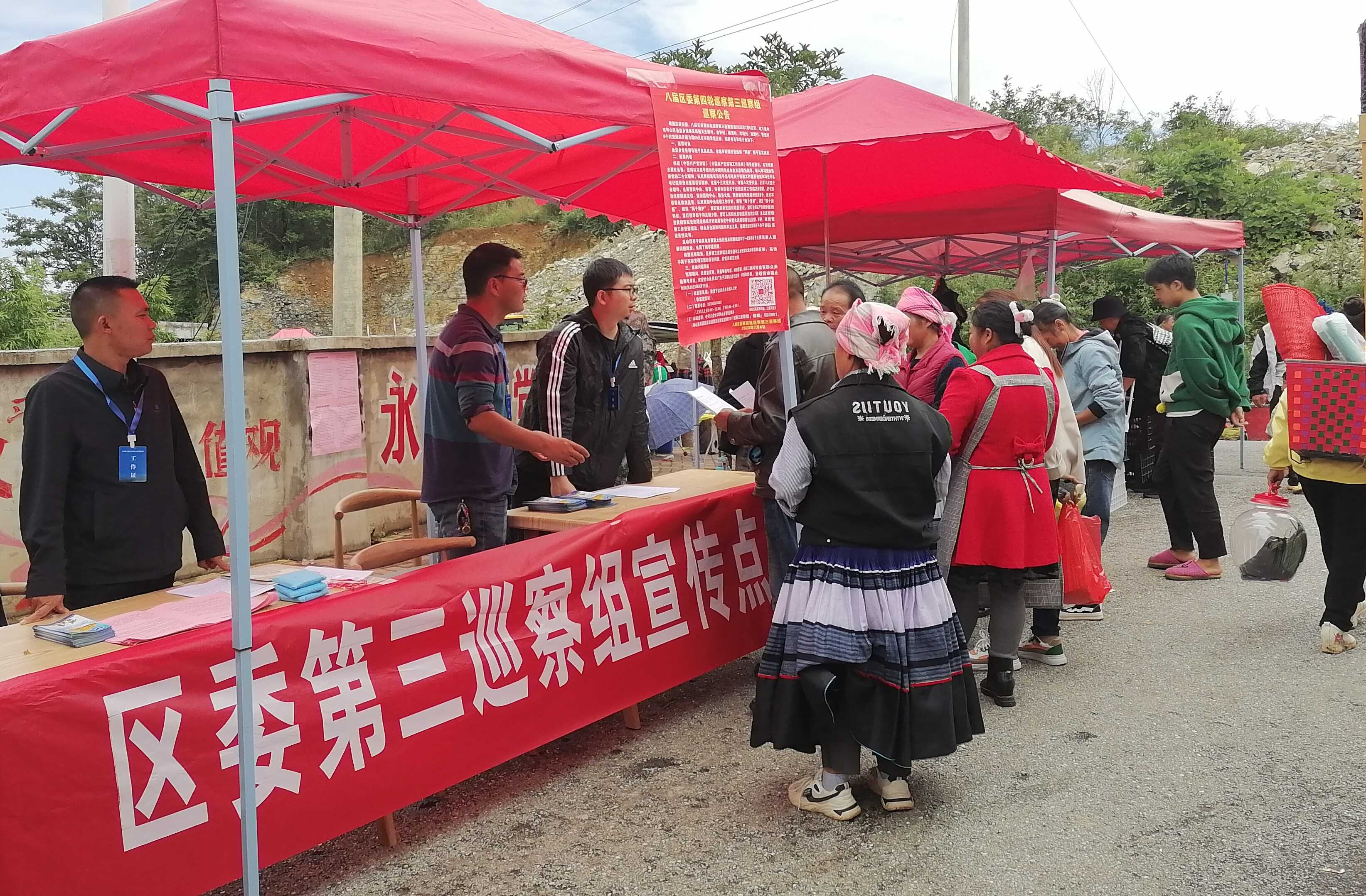 八届六盘水市钟山区委第四轮巡察第三巡察组利用赶集天到金盆乡摆摊设点开展相关宣传,发动群众。