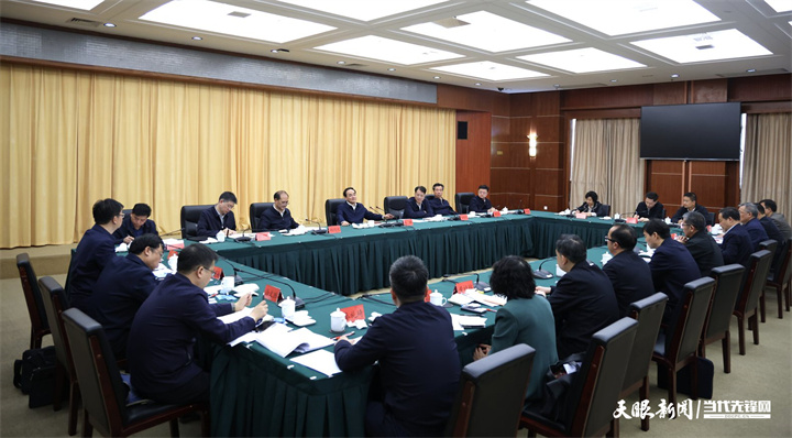 图为徐麟主持召开座谈会,听取“富矿精开”工作推进情况。