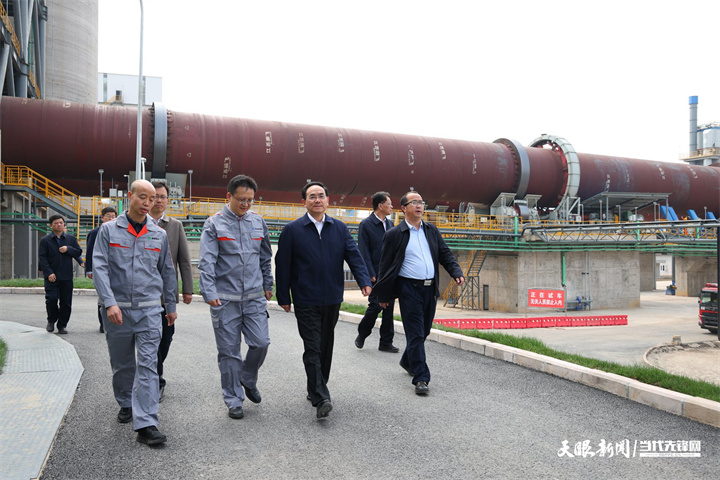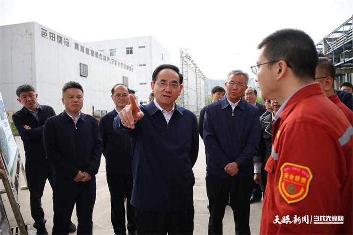 图为徐麟在福泉市考察瓮福化工公司磷石膏循环经济项目,详细了解磷石膏产业化利用、生态环境保护等情况。