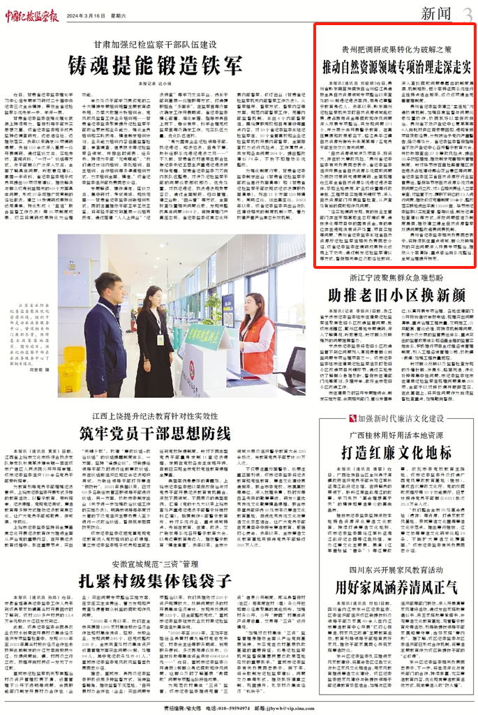“经实地调研发现,有的林业主管部门存在变相套取生态环境修复、造林绿化等项目中的国有资金,有的单位存在违规决策资产处置、项目实施等问题。”贵州省纪委监委派驻省自然资源厅纪检监察组相关负责同志介绍,该省纪委监委在调研成果转化运用上下功夫,通过制发纪检监察建议等方式,督促相关单位汲取经验教训,深入查找腐败问题暴露出的制度漏洞、机制短板,把个案特征同系统性行业性特点结合起来,逐级逐项健全完善管理制度。