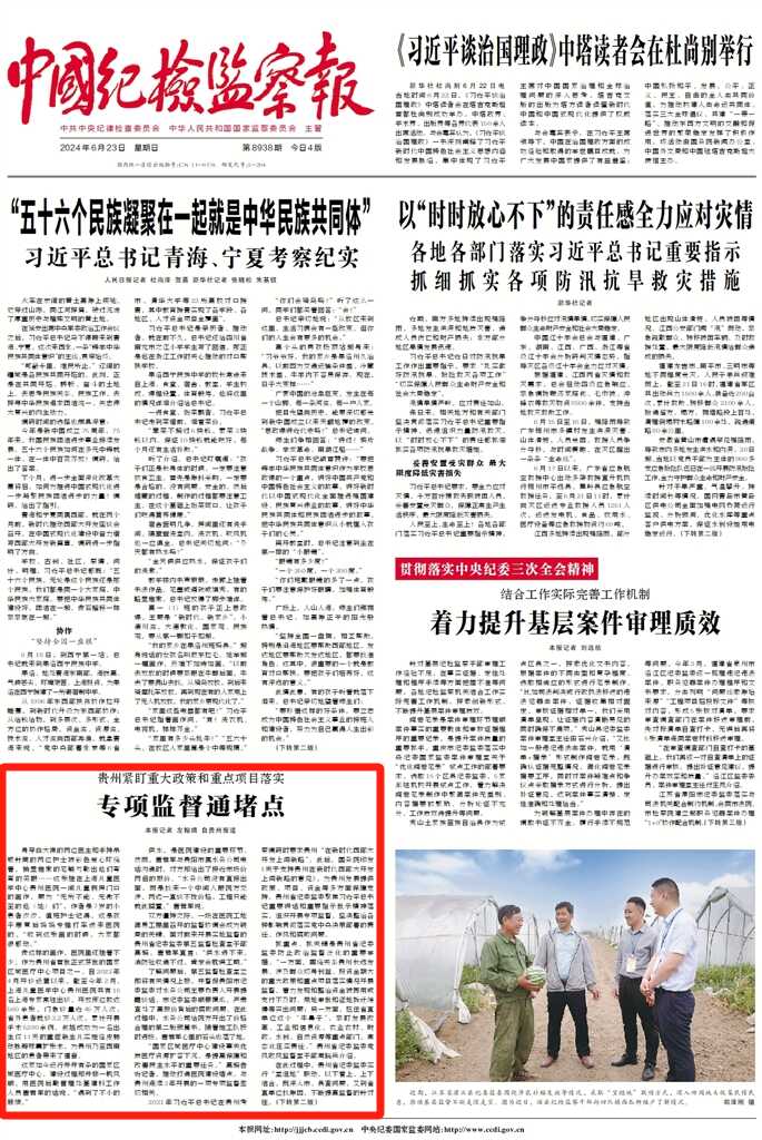 2021年习近平总书记在贵州考察调研时要求贵州“在新时代西部大开发上闯新路”。此后,国务院印发《关于支持贵州在新时代西部大开发上闯新路的意见》,为贵州发展提供政策、项目、资金等多方面保障支持。贵州省纪委监委聚焦习近平总书记重要讲话和重要指示批示精神落实,组织开展专项监督,坚决整治各种影响贯彻落实党中央决策部署的责任、作风和腐败问题。