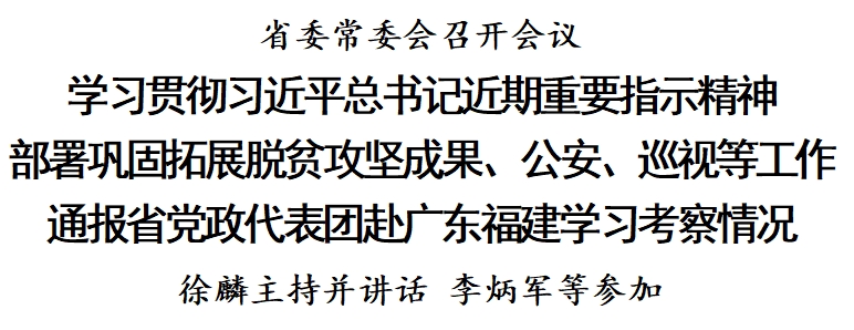 6月11日,省委常委会召开会议,学习贯彻习近平总书记近期重要指示精神,学习贯彻巩固拓展脱贫攻坚成果同乡村振兴有效衔接工作电视电话会议、2024年推动“四好农村路”高质量发展现场会、全国公安工作会议精神,通报省党政代表团赴广东福建学习考察情况,听取十三届省委第二轮巡视整改和第四轮巡视情况汇报,研究部署有关工作。